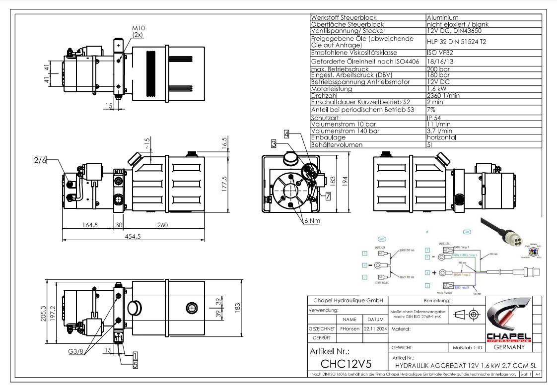 Chapel Hydraulik-Kompaktaggregat 12/24V