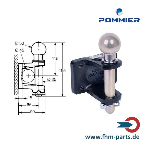 Sie hat einen D-Wert bis 12 KN für die Kugel und 20 KN für den Bolzen und eine Stützlast von 120 kg.